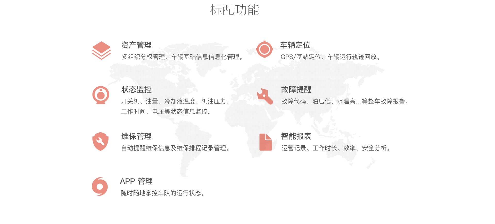 通过传感器获知叉车状态和职员作业情形并接入互联网、驾驶员、维修工、治理员等即可通过电脑、手机、车载装备终端相识车辆装备状态、使用状态、因此能随时随地掌控情形、实现高效的车队治理。。。。。。
